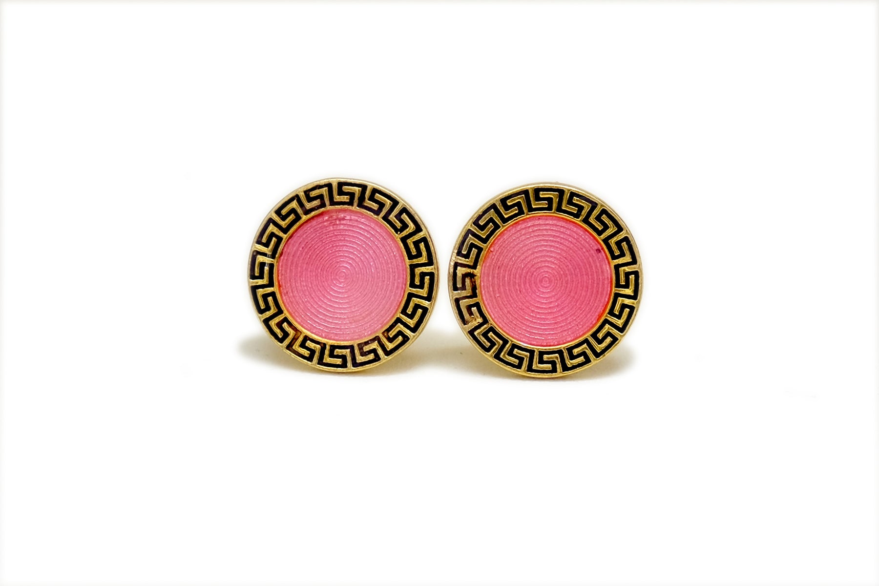 The ever so elegant Meander border with Pink Enamel center in a circular texture.