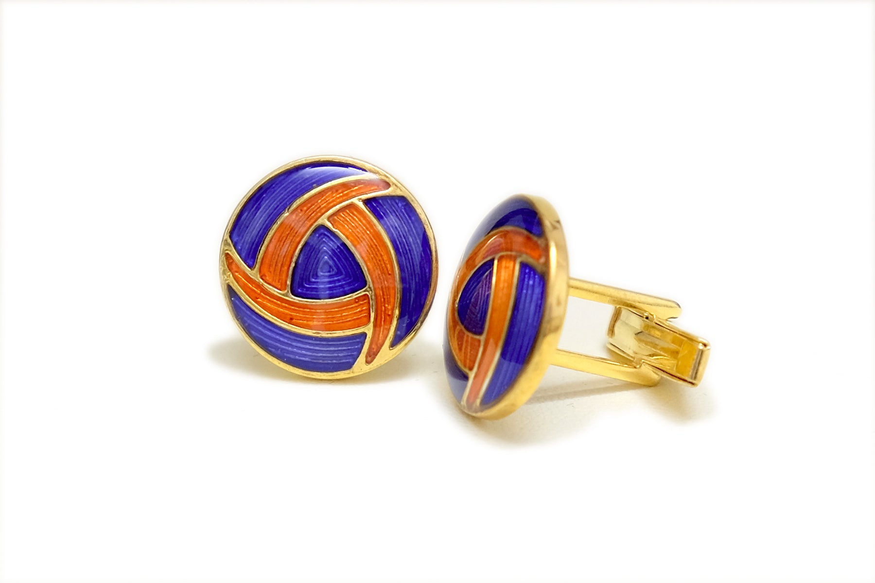 A splash of orange on the royal blue cufflinks. Adds the zing needed on your crisp white shirt.