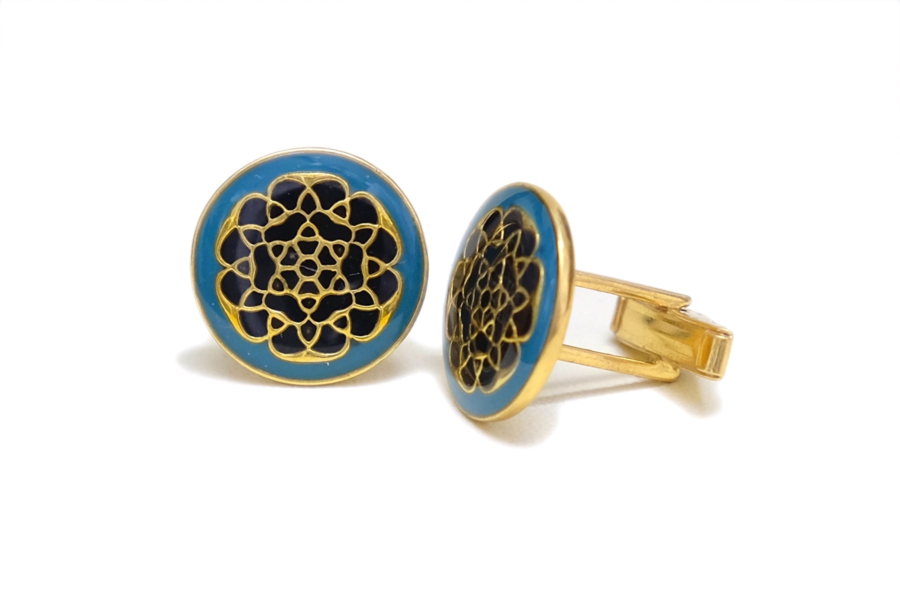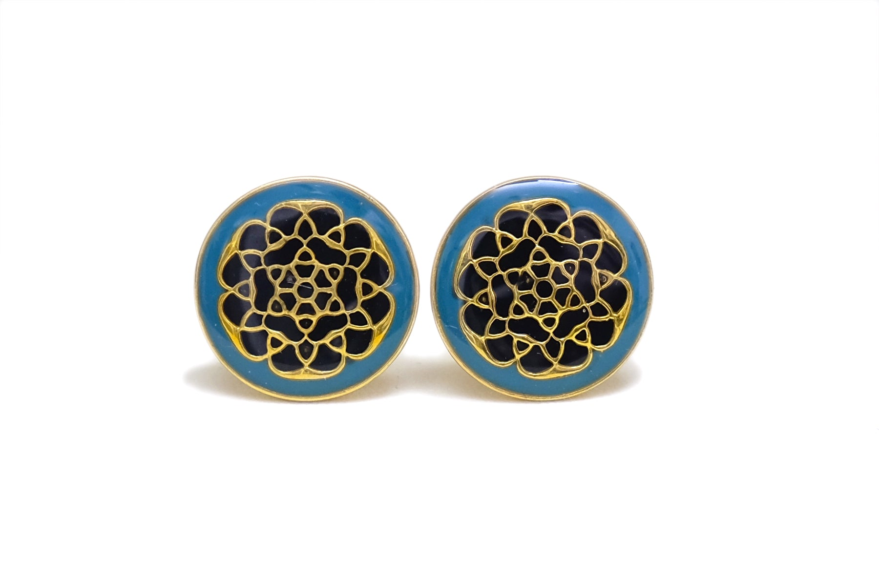 Intricate Moroccan Motif in black enamel bordered with an unconventional Teal Enamel.