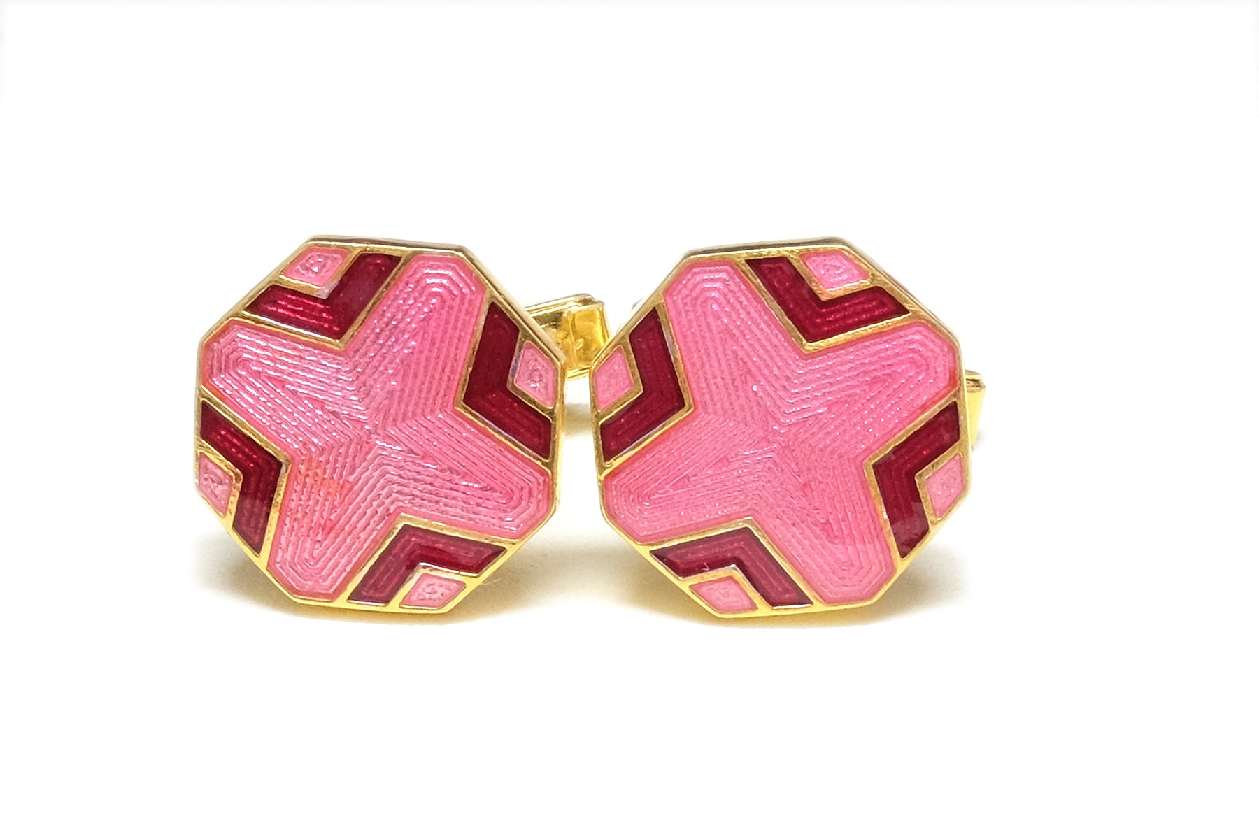 Octagonal Art Deco Baby Pink and Maroon Enamel Cufflinks.