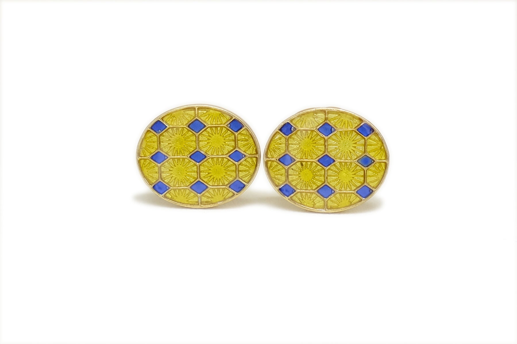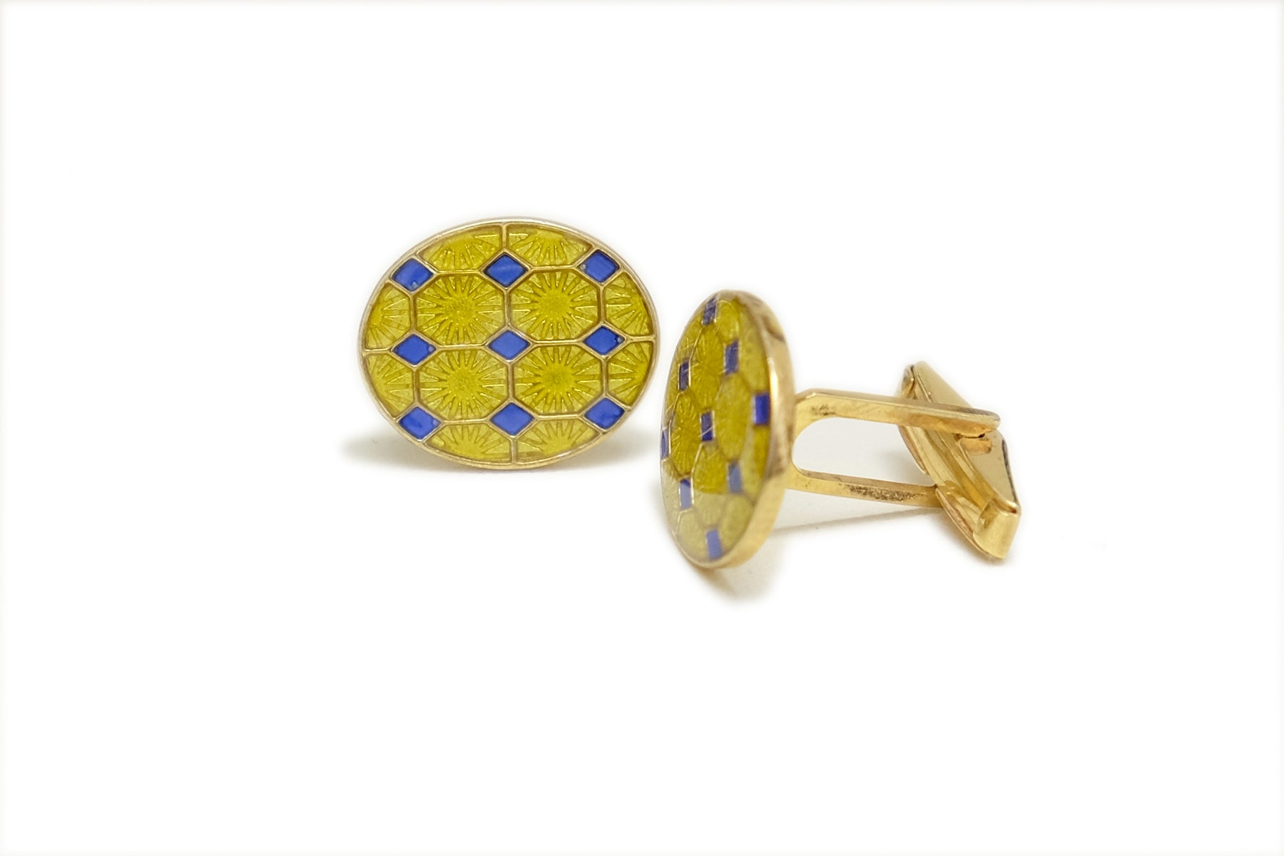 Yellow enamelled cufflinks with a hint of blue are sure to brighen up your day.