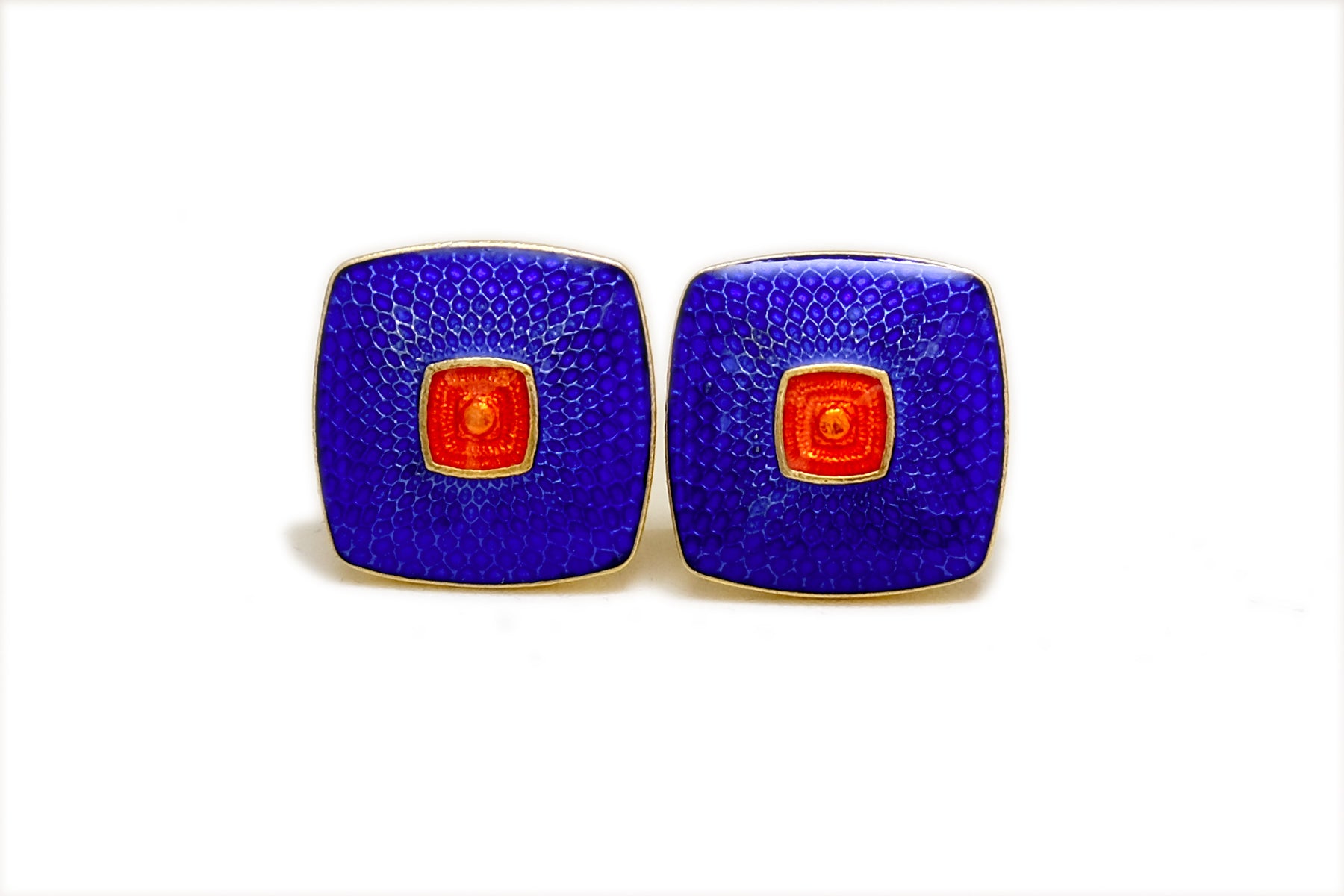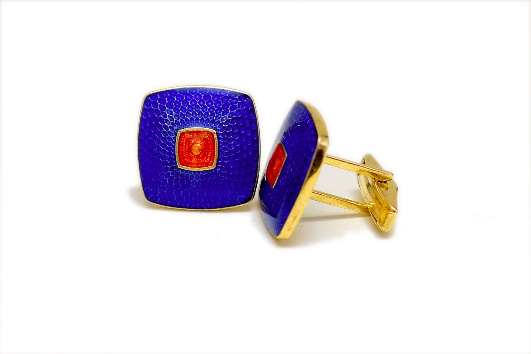Rounded square cufflinks with Royal Blue and Bright Orange Cufflinks.