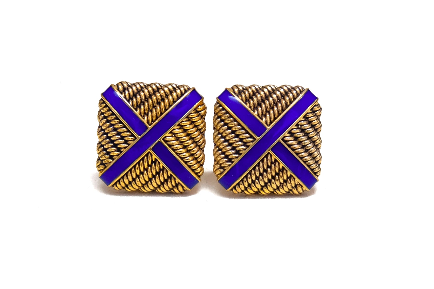Royal Cufflinks in a solid twisted wire design with a royal blue enamel cross.
