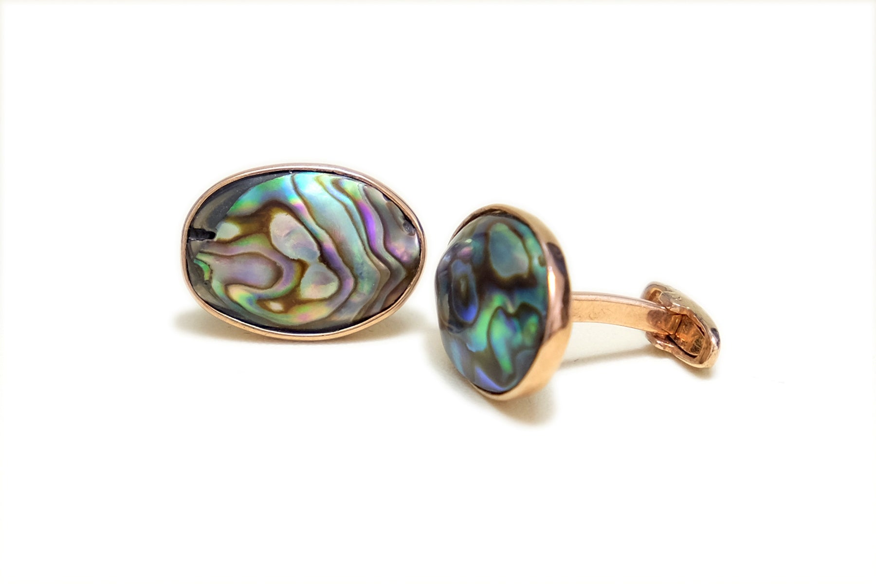 Natural Abalone shells set in their free form as cufflinks.